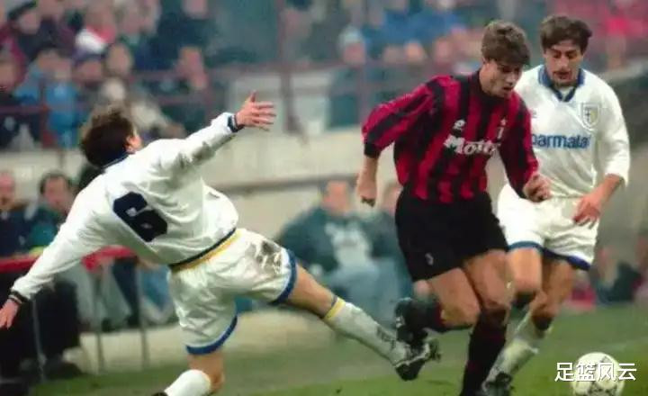 特别是1996年以后,圣西尼也是老而弥坚。他是1966年出生的,年纪很大,但他也是常青树。随着年龄增大,他的运动能力衰退,他更多是靠经验和意识踢球。